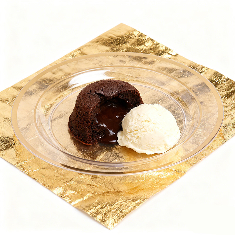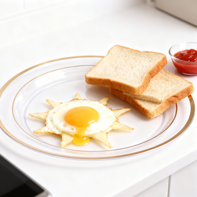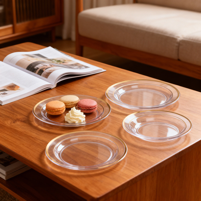 clear plate + gold rimElegantes Design mit GoldrandElegante Goldverzierung auf transparentem Teller, wertet die Ästhetik beim Essen und Servieren auf.