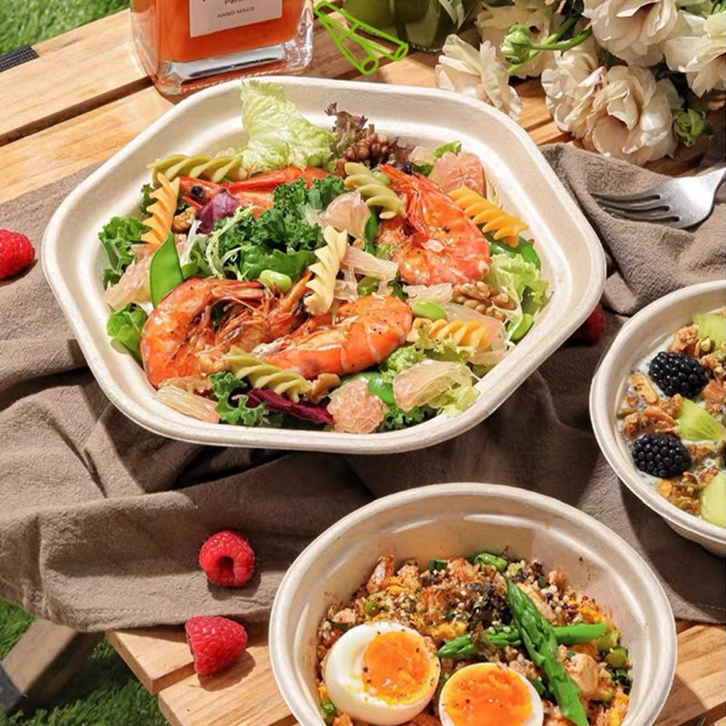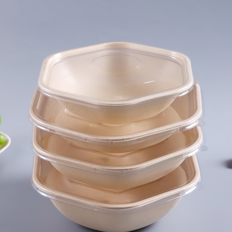 228*66mm, 228*79mmOur leak-proof, hexagonal sugarcane bowls are a sustainable statement your customers will love. But their real power is unlocked with your custom logo.