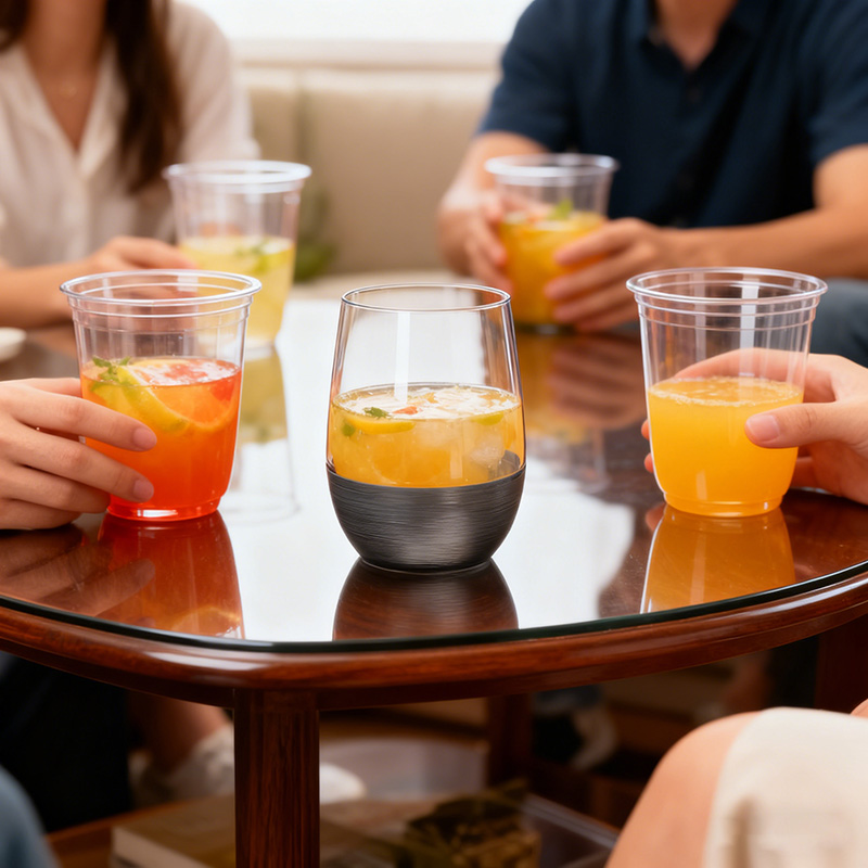 Stilvolles Design: Der elegante, glasähnliche, klare Korpus bringt die Farben der Getränke optimal zur Geltung und bildet zusammen mit dem farbenfrohen Boden eine stilvolle Ergänzung für jede Tischdekoration und einen festlichen Touch.