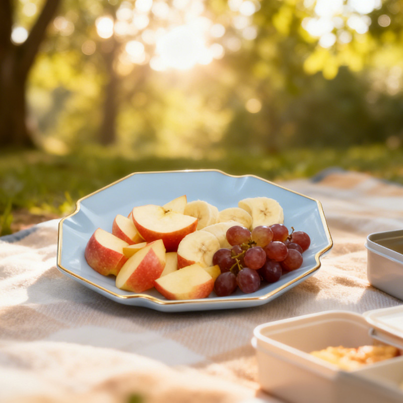 Zwei praktische Größen: 7-Zoll-Teller für kleine Portionen (Obst, Mini-Desserts, Vorspeisen); 10-Zoll-Teller für große Salate, Pasta-Beilagen, größere Platten und legere Hauptgerichte, passend für unterschiedliche Servierbedürfnisse.