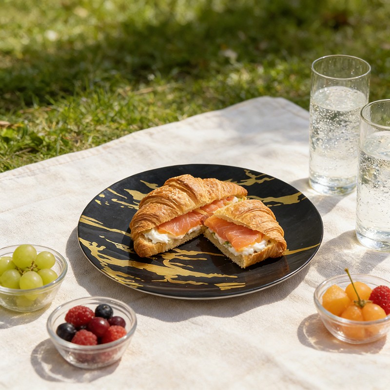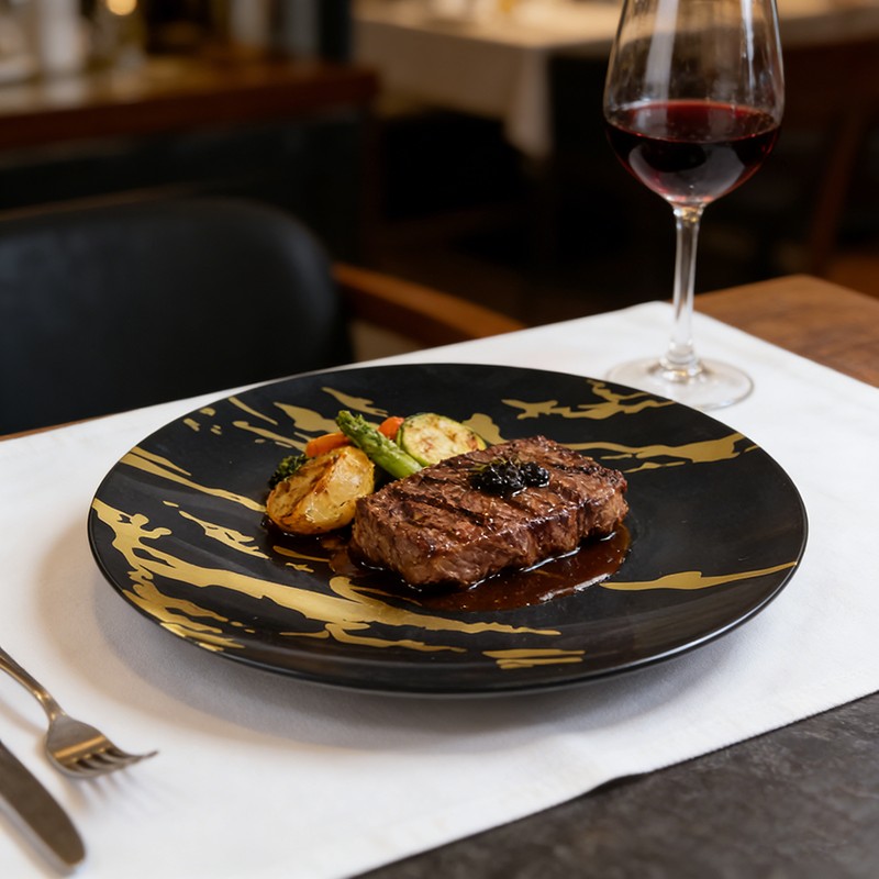 Die markante, fließende goldene Marmorierung auf dem glänzend schwarzen Grund verleiht den Tellern einen luxuriösen, modernen Look, der an hochwertiges Steingutgeschirr erinnert. Ideal für elegante Hochzeiten, Firmenbankette und Weihnachtsfeiern – diese Teller werten jede Tischdekoration im Handumdrehen auf und harmonieren perfekt mit metallischem Besteck und Leinen-Servietten.