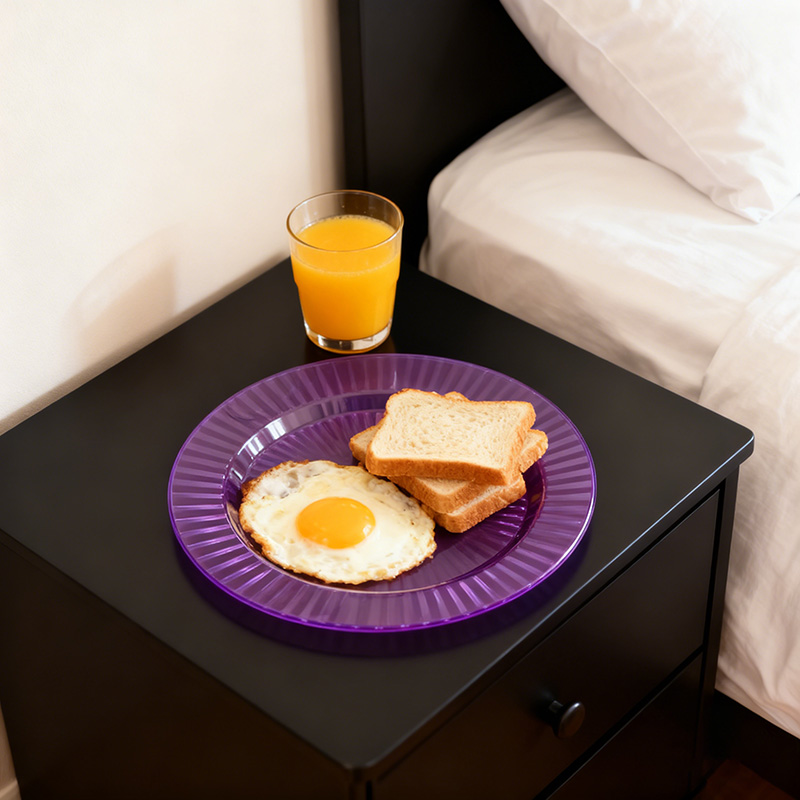 Doppeltes stilvolles Design: Die 7-Zoll-Teller zeichnen sich durch aufwendige Verzierungen und einen leuchtenden violetten Farbton aus (ideal für Obst/Desserts); die 10-Zoll-Teller haben ein klassisches, strukturiertes Streifenmuster für einen klaren, modernen Look (perfekt für herzhaftere Portionen).