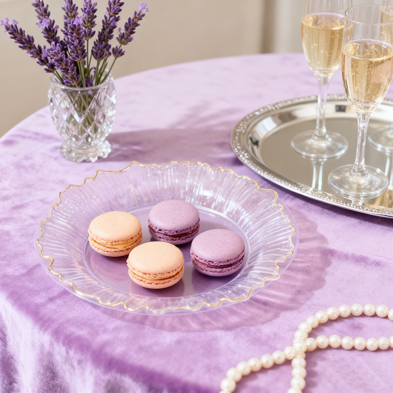 17.8 cm, 25.4 cmKernspezifikationen & sicheres MaterialDekorativer Einwegteller in unregelmäßiger Form mit Goldrand, hergestellt aus hochwertigem, lebensmittelechtem und BPA-freiem Kunststoff; bruchfest und robust, geeignet für Salate, Obst, Desserts, Vorspeisen und leichte Snacks, ohne sich zu verbiegen oder auszulaufen.