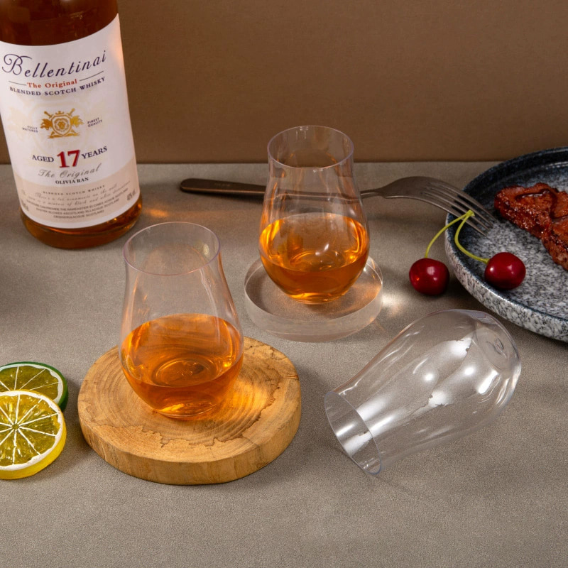 H9.5cm*W6.4cm*4.4cmDesigned for versatility and style, this 6oz stemless plastic tasting glass seamlessly transitions from beer tastings to wine sips, cocktail servings, and beyond—blending the sophistication of a traditional tasting glass with the durability of food-grade plastic. The stemless design offers unmatched stability and a comfortable grip.