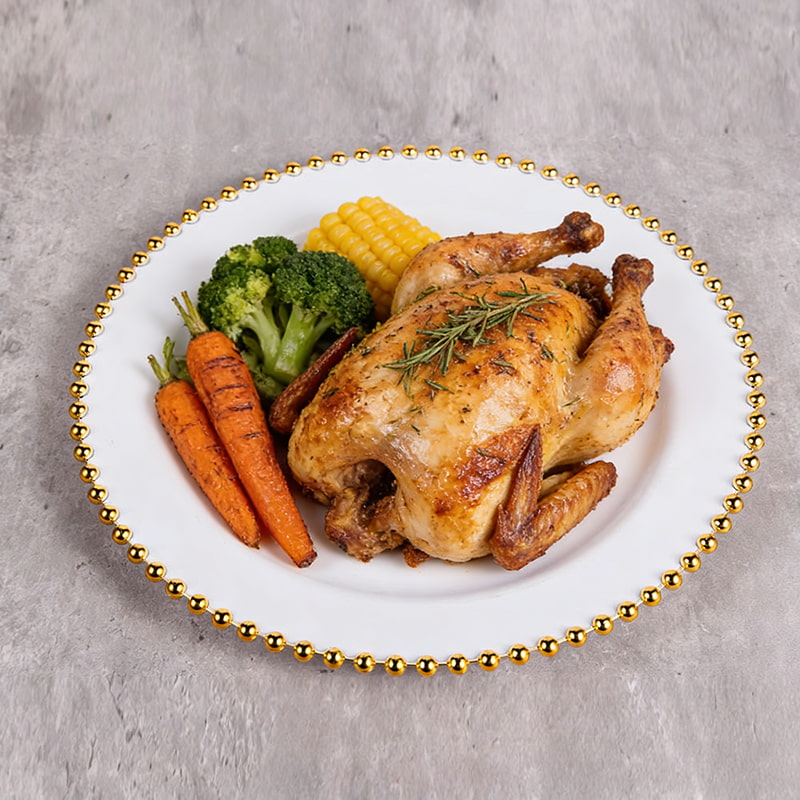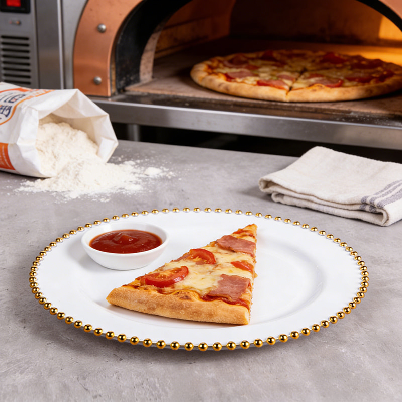 white plate + gold pearl designElegant Beaded Gold Rim Design