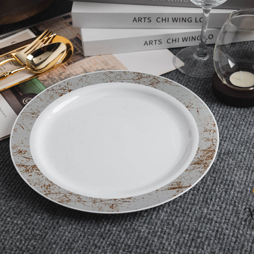 ✨Weißer Plastikteller mit goldenem MarmorrandElegantes und stilvolles Geschirr mit hochwertiger Verarbeitung